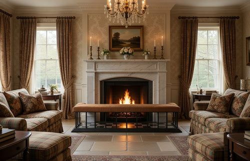 Né dans les clubs anglais du XVIIIe siècle, le club fender est bien plus qu'un garde-feu. C'est un siège bas qui encercle la cheminée — une invitation à s'asseoir, à ralentir, à se retrouver autour du feu.