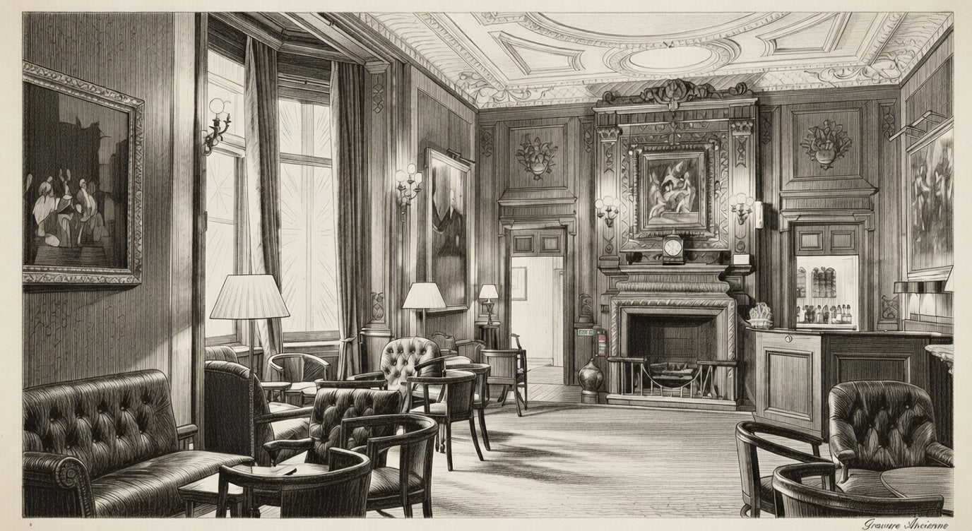 Les club fenders apparaissent au XVIIIe siècle dans les grands clubs privés londoniens et les demeures aristocratiques — bibliothèques, fumoirs, salles de billard. Dans une époque sans chauffage central, le foyer est le cœur de la pièce. Le club fender en occupe naturellement l'espace : il offre une assise chaude, encadre le feu, et crée autour de lui un espace de vie à part entière.